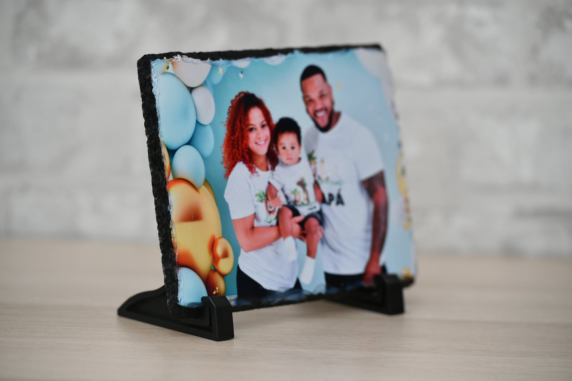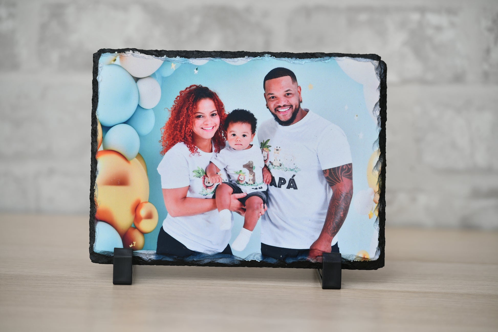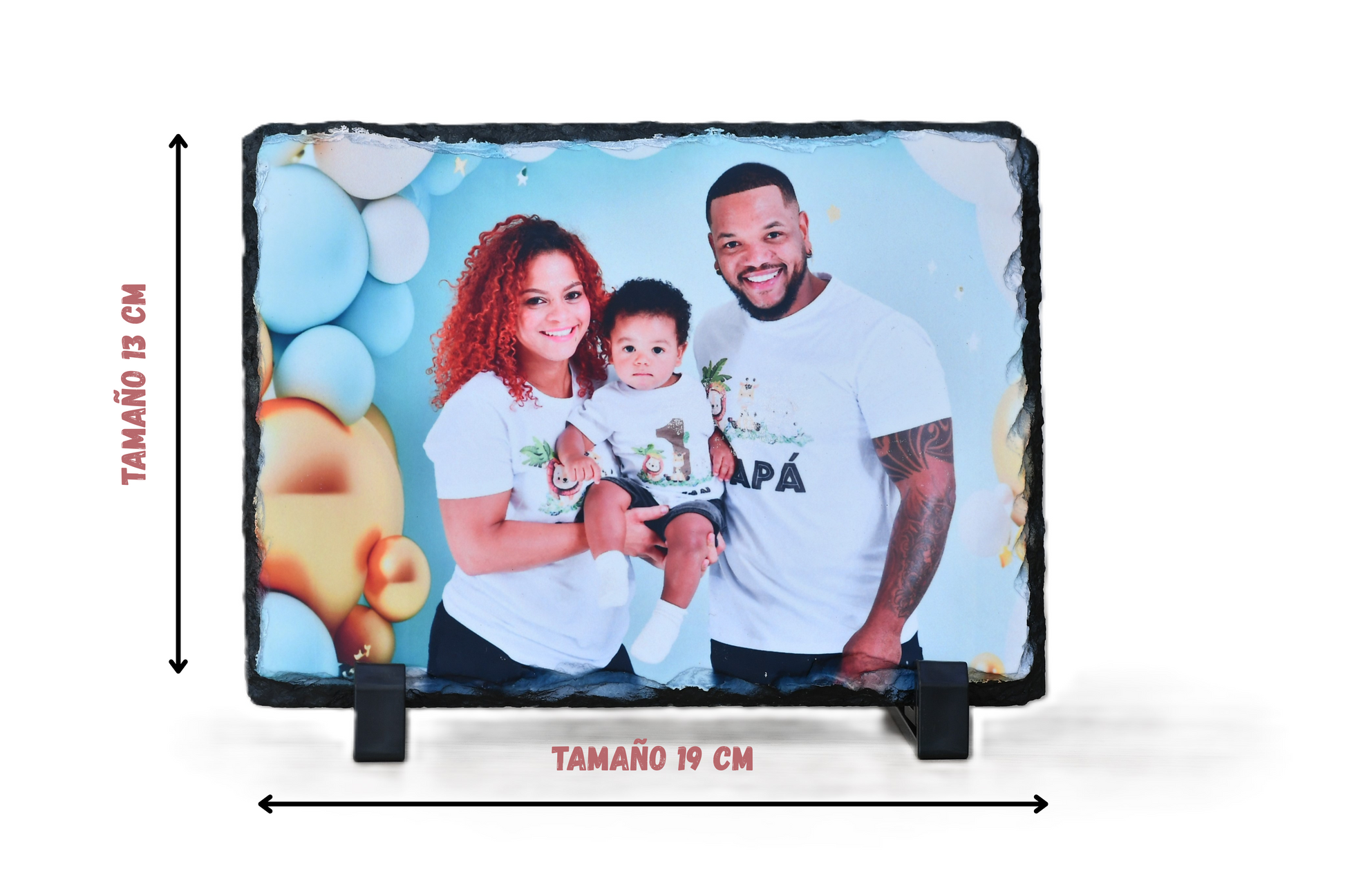 Nuestra roca de pizarra personalizada transforma tus mejores fotos en una pieza artística y duradera. Su acabado natural y bordes irregulares le dan un toque auténtico y sofisticado, ideal para decorar cualquier espacio o sorprender a alguien especial.